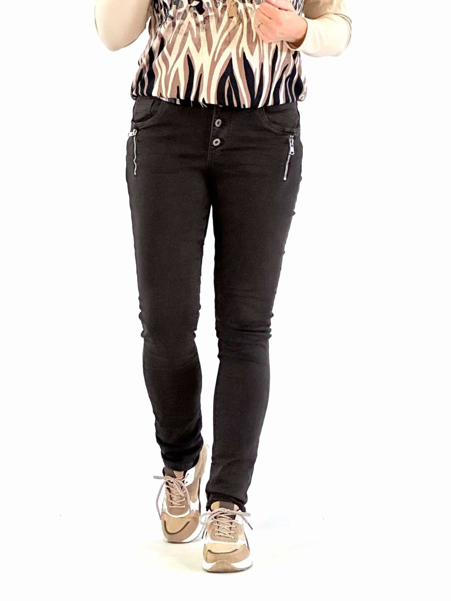Lækkert sorte bukser med 4 knapper. Lommer foran med lynlås. Cat og Co Bukser Astrid 132977 kan du bruge dem sammen med en lækker bluse som du også finder flere af her på webshoppen.
