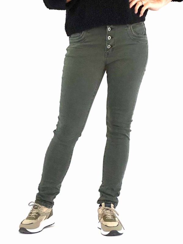 Lækkert Grønne bukser med 4 knapper. Lommer foran og bagpå. Brug Cat og Co Bukser Mille Army 132978 kan du bruge dem sammen med en lækker bluse som du også finder flere af her på webshoppen.