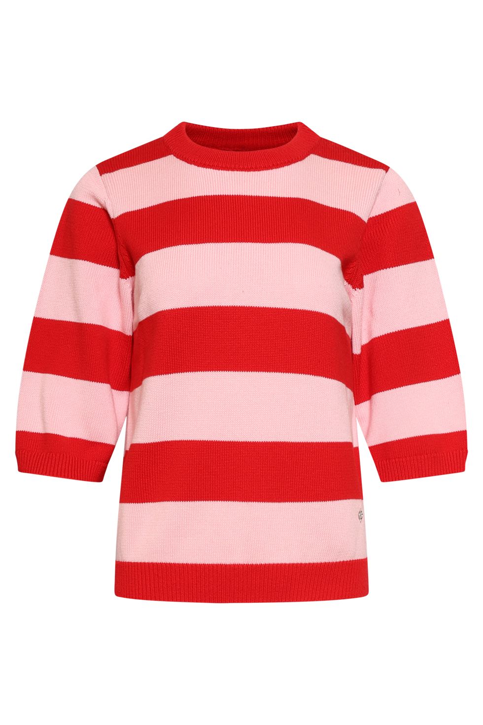 Navnet siger det hele, dette er en vidunderlig smuk strik bluse med lyse og røde brede striber. Ses her i en lækker bomulds kvalitet. Blusen har 3/4 ærmer. Fin rund halsudskæring. Denne smuksak af en bluse bør ikke mangle i din garderobe! Smashed Lemon Bluse 26149 sidder altid godt og er meget nem at kombinerer meden nederdel eller et par jeans.